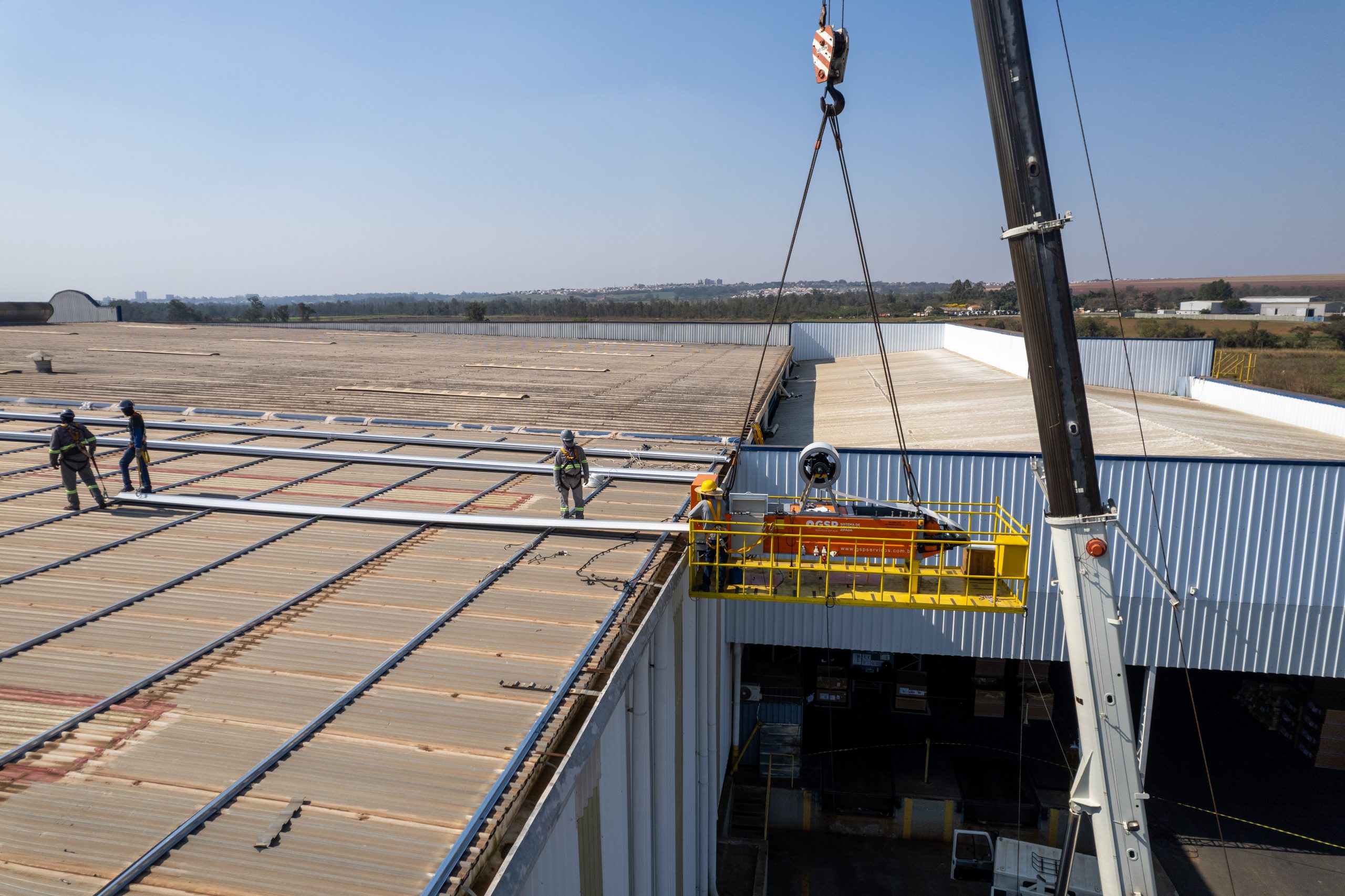 A solução aplicada consiste em telhas contínuas, interligadas lateralmente através de uma zipagem mecânica, que promove uma junção segura e estanque. O retrofit é projetado para maximizar a durabilidade e minimizar a necessidade de manutenção, ideal para coberturas que necessitam de máxima estanqueidade.